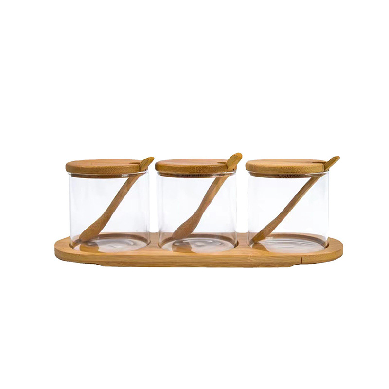 Digawe saka kaca borosilikat dhuwur, iku ora kokain nalika kapapar kondisi panas lan kadhemen, iku asam lan alkali tahan, timbal-free lan non-beracun. Tutup kayu pring sing apik banget, praktis lan trep; tektur transparan lan cetha, nggawe luwih gampang kanggo ndeleng lan aran luwih aman; desain bunder lan sudhut tutuk nggampangake kanggo nyimpen lan ngresiki.