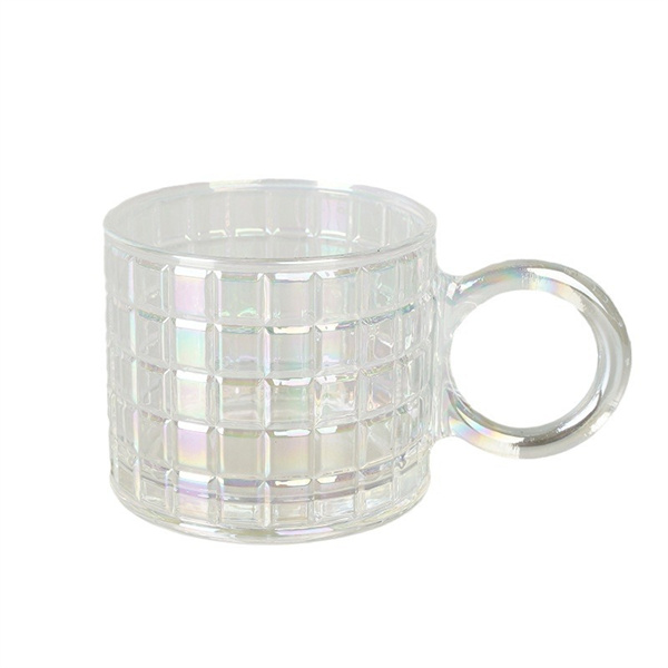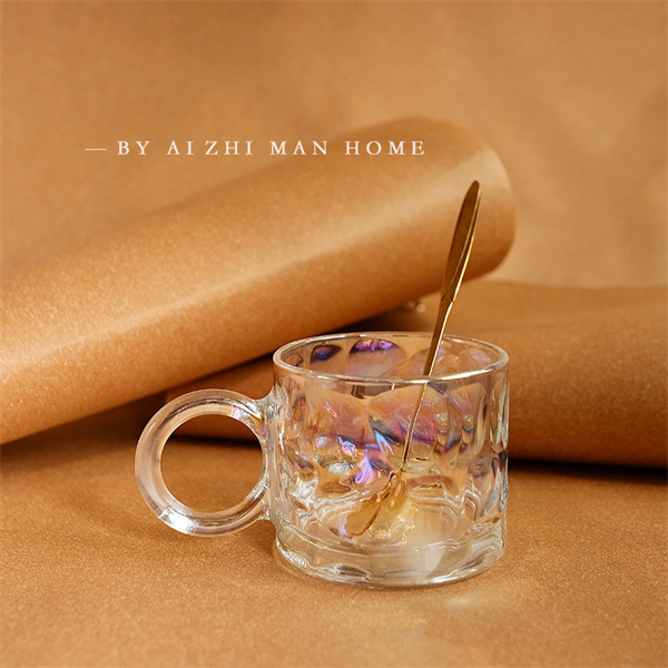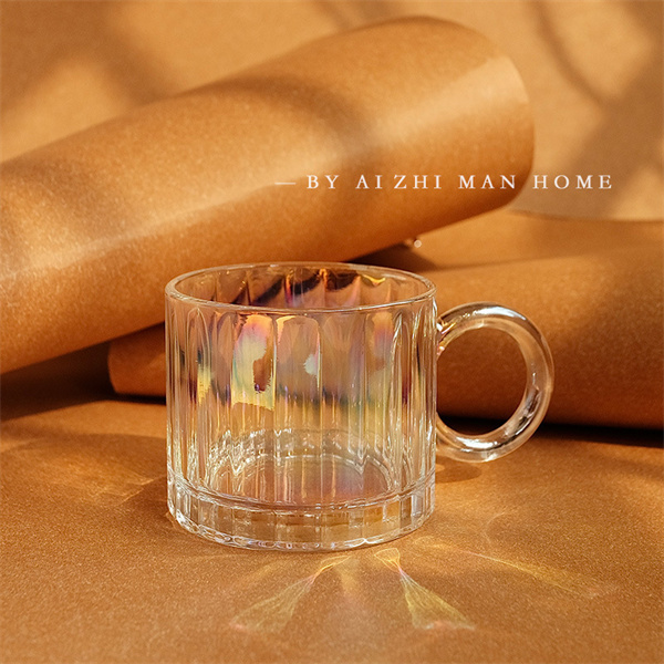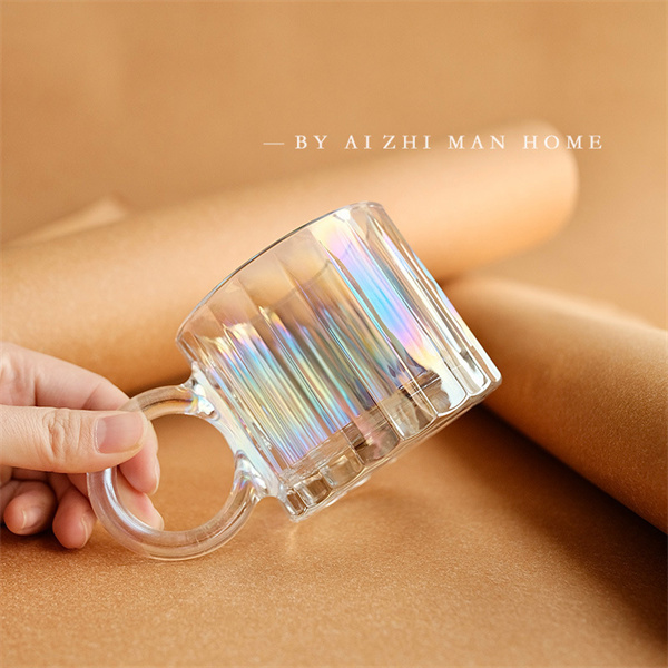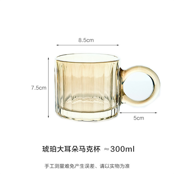 Merk: INTOWALK Jeneng produk: cangkir banyu kaca desain dhuwur Bahan: kaca kualitas dhuwur Kerajinan: kerajinan tangan katrangan rinci Cangkeme bunder lan amba, gampang diombe lan gampang diresiki Ngisor cangkir sing kandel, stabil lan awet, ora gampang bledosan