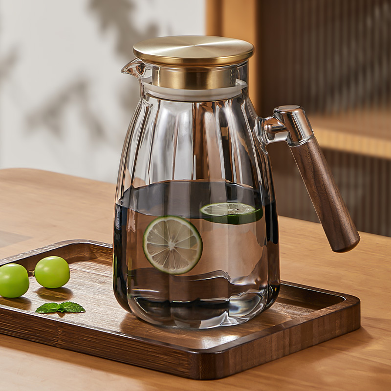 Walnut Wood Handle Waluh Water Pitcher - Katrangan rinci